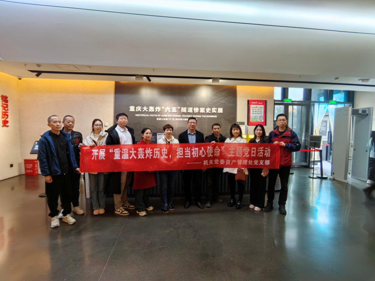 为深化党史学习教育,弘扬爱国主义精神,11月28日下午,重庆工商大学资产管理处党支部组织全体党员赴重庆大轰炸惨案遗址,开展了以“铭记历史,缅怀先烈,砥砺前行”为主题的党日活动,在历史的回望中汲取奋进力量。